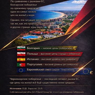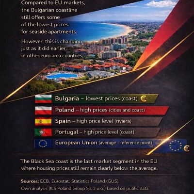 Property prices in Bulgaria still remain among the lowest in the EU. However, the experience of countries that adopted the euro earlier clearly shows that such a market window does not last long.