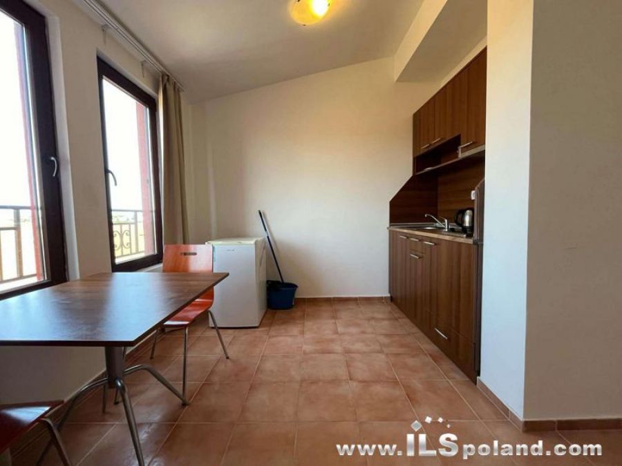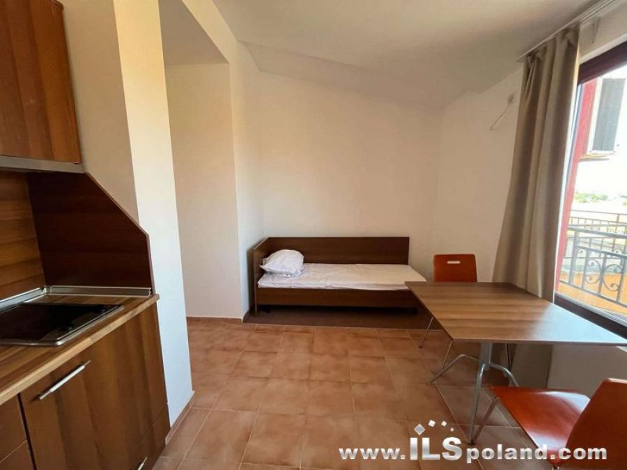 A fully furnished and fully equipped one-room apartment with direct exit and view to the pool at an unbeatable price, in a luxurious, year-round, four-star apartment complex ****MARINA CAPE, built against the background of the bay in Aheloy, above an intimate marina (an elegant port for yachts and fishing boats), directly at the beach of the Black Sea in Bulgaria.